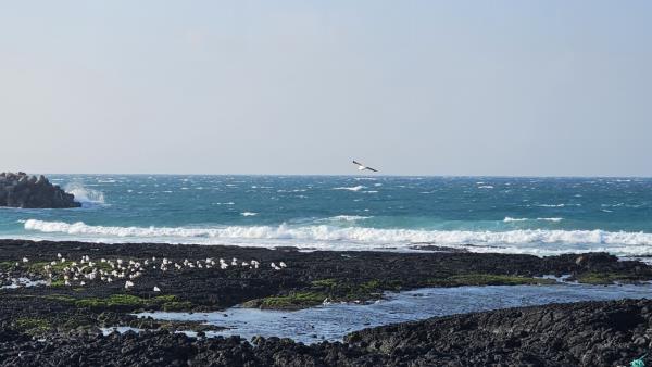 파란 하늘과 바다 그리고 구름이 기가 막히게 배치된 프레임 같은 풍경에